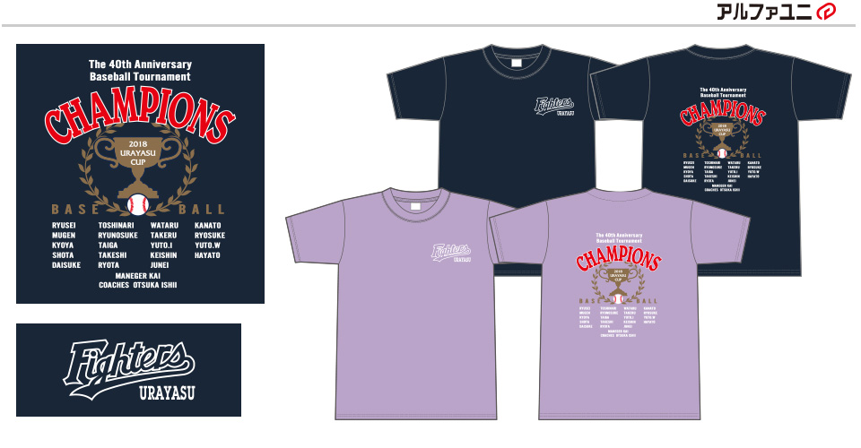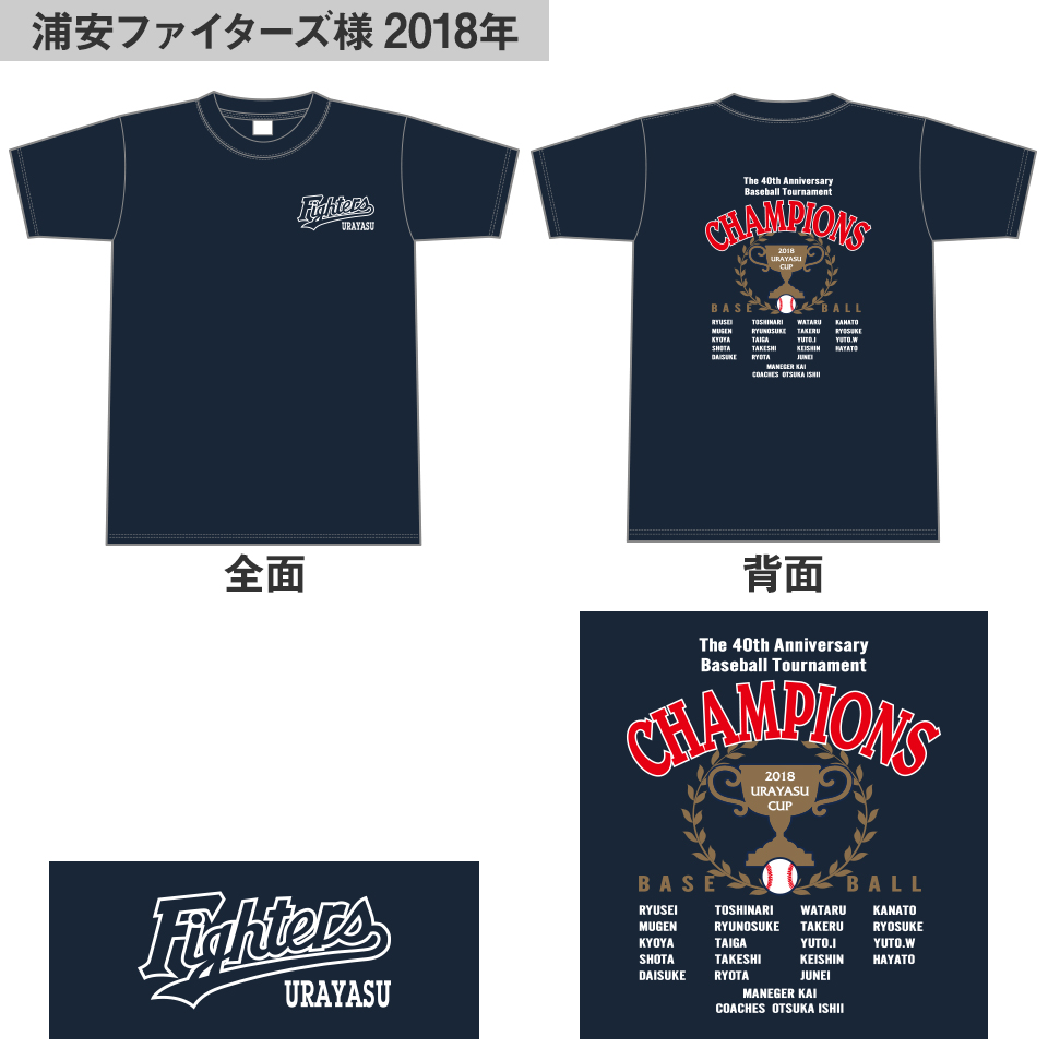 浦安ファイターズ様優勝記念Tシャツのご紹介です。着用写真をご提供ありがとうございました!