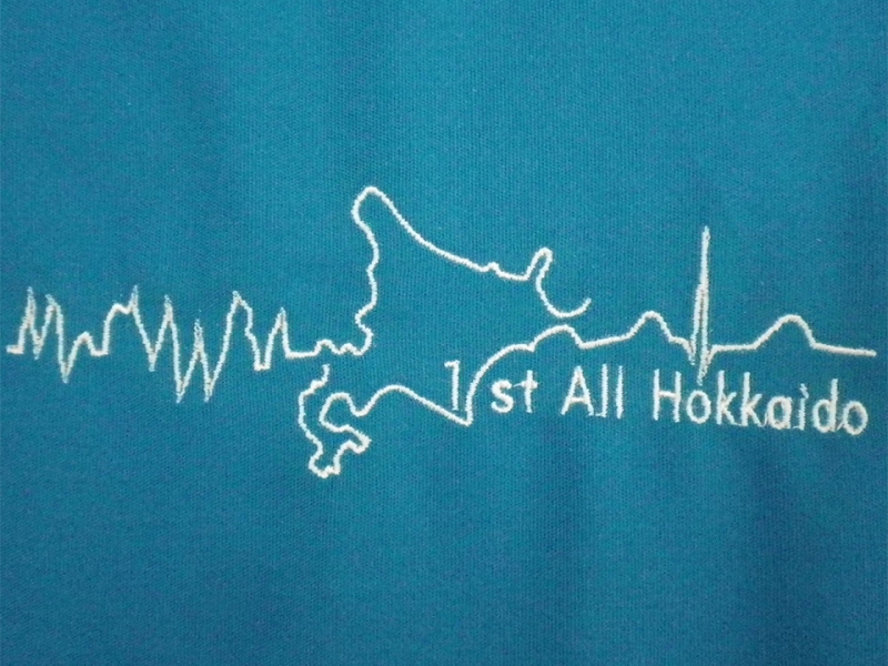 右胸に刺繍で北海道の地図と心電図を組み合わせたデザインを入れました。