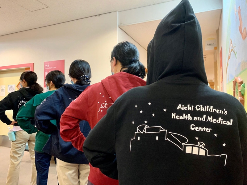 小児科 【NO.183】あいち小児保健医療総合センター_小児科外来様 5213 シルクプリントネーム刺繍パーカープリント 1色背中袖 【実績No.183】 あいち小児保健医療総合センター_小児科外来様のオリジナルパーカーのご紹介です。 このたびは製作のご依頼、および画像のご提供ありがとうございました。 お客様からのコメント 寒い中、コロナ禍で例年以上の換気や玄関で患者家族の体調確認を行うため、自分たちの体調管理をする目的でパーカー作成させて頂きました。 こども専門病院で病院らしくない病院を目指す当センターの考えをイメージした遊び心を加えた字体のセンター名とセンターのシルエットを背中にシルクプリントして頂きました。 とてもかわいく仕上げて頂き、パーカー作成を知った他の病棟や医師にも好評で、大満足です。 本当にありがとうございました! からのコメント このたびはアルファユニをご利用いただきましてありがとうございました! ● マーキングの詳細説明 背中1色シルクプリント、左袖にネーム刺繍を入れさせていただきました。 この記事をシェア その他おすすめ事例 【No.51】島根大学医学部小児科様 7003SC 【NO.162】国立国際医療研究センター小児科様 7000SC 【NO.167】神奈川県立こども医療センター2020様 133 実績一覧 特集 アルファユニカタログVol.5 刺繍の見た目が変わる?生地の違いと刺繍の差 コックコート・飲食系ユニフォーム特集 全面昇華プリントスクラブ 特集一覧