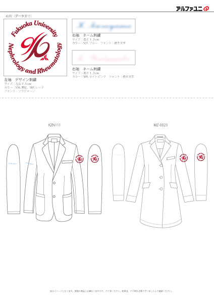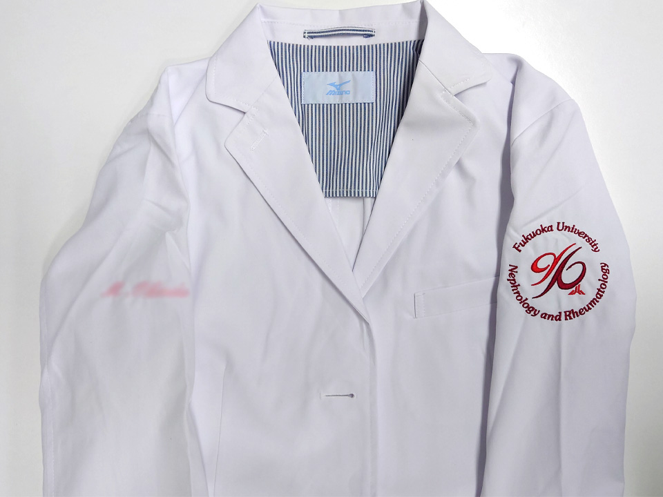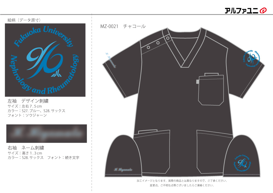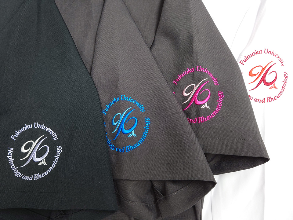 チームスクラブ 【NO.262】福岡大学腎臓・膠原病内科様 MZ-0021 デザイン刺繍ドクターコートネーム刺繍袖 【実績No.262】 福岡大学医学部腎臓・膠原病内科様-チームスクラブのご紹介です。 ドクターコートとスクラブに同じデザインを色を替えて刺繍しました。 このたびは製作のご依頼、および画像のご提供ありがとうございました。 お客様からのコメント 初めて注文させていただきました。 同じデザインで4色注文させていただきましたが、追加費用もお手頃でありがたかったです。 おかげさまで、気分を変えて仕事ができています。 また、縫製も丁寧で、満足しています。 ありがとうございました。 からのコメント このたびはアルファユニをご利用いただきましてありがとうございました! ●マーキングの詳細説明 左袖にスクラブのカラーなどにより糸のカラーを変えたデザイン刺繍、右袖にネーム刺繍を入れさせていただきました。 この記事をシェア その他おすすめ事例 【No.3】嘉悦大学インキュベーション同好会様 1525PH(廃番) 【No.6】北野病院様 MZ-0092 【No.8】佐久総合病院様 7003SC 実績一覧 特集 アルファユニカタログVol.5 刺繍の見た目が変わる?生地の違いと刺繍の差 コックコート・飲食系ユニフォーム特集 全面昇華プリントスクラブ 特集一覧