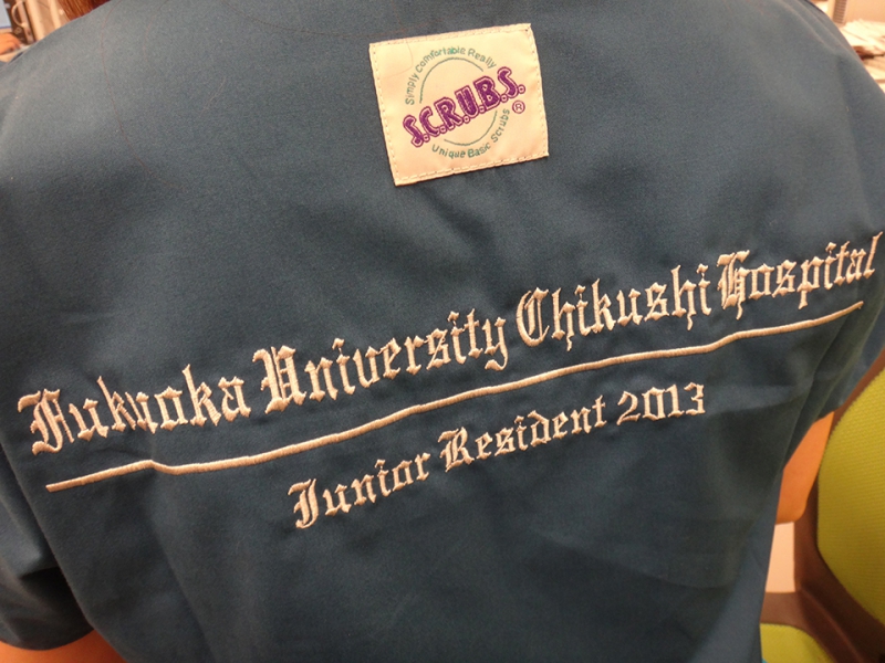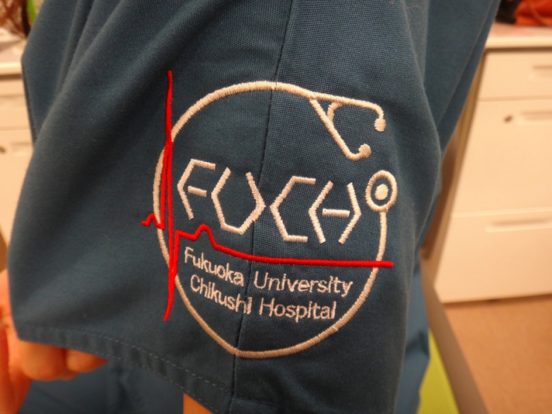 チームスクラブ 【No.60】福岡大学医学部附属筑紫病院様 Z1J15 デザイン刺繍フォント刺繍背中袖 【実績No.60】 福岡大学附属筑紫病院臨床研修医様のスクラブです。 からのコメント アルファユニをご利用いただきましてありがとうございました! 左袖に聴診器と心電図を使用したオリジナルのデザインを刺繍しました。皆様で着用している画像をお送りいただきました。 初回の納品後も、数回追加のご注文をいただきました。ありがとうございます! ●マーキングの詳細説明 背中には、有り文字(花文字で)で2行大きく刺繍を入れました。 本来プリントの方が軽くて、着心地など実用性が高いのですが、業務用のハードな洗濯への耐久性を考え、 刺繍でマーキングすることをオススメしております。刺繍は立体的ですので、見ためのボリューム感があり、とても格好良いです。 袖には、聴診器と心電図のイラストを組み合わせたデザインを入れました。 FUCH(Fukuoka University Chikushi Hospital)を極力崩した感じで入れたいというご要望に合わせて、数種類 デザイン提案させていただき、合計5~6回ほど修正も含めデザインをご提案させていただき最終決定しました。その甲斐あって、個性的でカッコ良いデザインとなりました。特に、心電図を レッドで表現したのですが、カリビアンブルーの本体色にレッドが良いアクセントとなり、とても綺麗な仕上がりとなりました。 この記事をシェア その他おすすめ事例 【No.3】嘉悦大学インキュベーション同好会様 1525PH(廃番) 【No.6】北野病院様 MZ-0092 【No.8】佐久総合病院様 7003SC 実績一覧 特集 アルファユニカタログVol.5 刺繍の見た目が変わる?生地の違いと刺繍の差 コックコート・飲食系ユニフォーム特集 全面昇華プリントスクラブ 特集一覧