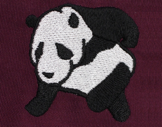オリジナルキャラクターの「マッチョPANDA」を右袖にデザイン刺繍しました。福島医科大学様とPANDAの関係、医療とPANDAの関係、このキャラクターを刺繍することになった詳しい経緯などはわかりませんが、出来上がりは大変可愛いスクラブになりました!