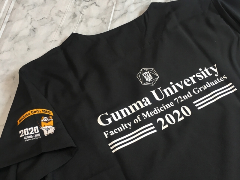 卒業記念 【NO.146】群馬大学医学部2020年卒業生様 133 シルクプリントデザイン刺繍プリント 1色背中袖 【実績No.146】 群馬大学医学部2020年卒業生様の記念スクラブのご紹介です。 画像のご提供ありがとうございました。 お客様からのコメント スクラブも無事個人の手元に届けることができまして、デザインとともに大変好評を頂いています。 過密なスケジュールな中で対応していただいてありがとうございました。 当初は卒業式の時に配ってそのまま皆で撮る予定だったのですが、コロナ感染拡大防止策として卒業式を含めた全ての集まりが中止・禁止されてしまって大人数で集まることができませんでした。 ご容赦ください。 今回、製作のお願いをするのが遅くなってしまいお忙しくしてしまったのですがデザインなど迅速な対応をしていただいて卒業までに間に合うことができました。 ぐんまちゃんの使用にあたっての県との連絡調整なども手伝っていただいてとても助かりました。 同学からもスクラブ可愛いありがとうという声も多数出ていて嬉しい限りです。 ありがとうございました。 からのコメント このたびはアルファユニをご利用いただきましてありがとうございました! 新型コロナウィルス感染拡大予防ということで集まることができず、全員写真が撮れなかったということをお聞きし、心を痛めております。そんななか画像のご提供ありがとうございました。ぐんまちゃん刺繍の承認番号を刺繍しなければならない件は、最後まで苦慮しましたが、なんとかクリアできました。 ●マーキングの詳細説明 背中1色シルクプリント、左袖にデザイン刺繍を入れさせていただきました。 この記事をシェア その他おすすめ事例 【No.2】福島県立医科大学様 Z1004 【No.4】大学医学部医学科LaRa 8th卒業生様 DS-2001 【No.5】東京医科大学2015年卒業生様 7000SC 実績一覧 特集 アルファユニカタログVol.5 刺繍の見た目が変わる?生地の違いと刺繍の差 コックコート・飲食系ユニフォーム特集 全面昇華プリントスクラブ 特集一覧