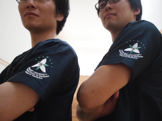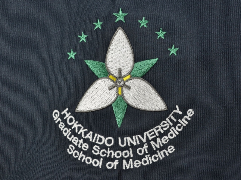 左袖に北海道大学医学部のマークをデザイン刺繍で入れました。