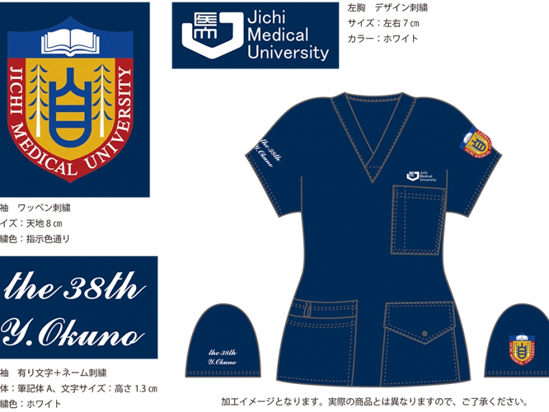 卒業記念 【No.79】自治医科大学38期様 Z1J15 デザイン刺繍ネーム刺繍ポケット口上刺繍ワッペンフォント刺繍袖 【実績No.79】 自治医科大学38期様オリジナルスクラブデザインのご紹介です。 画像のご提供ありがとうございました! お客様からのコメント 着た感想ですが、着心地はいいです。肌触りもよかったです。ポケットがたくさんあるし刺繍もたくさんしてもらったのでその分重たくなるかとも思ってましたが、あまり感じませんでした。 自分はローデンを頼みましたが、サンプルで貸していただいた物よりもいい色だったので嬉しかったです。どちらかと言えばネットにあるサンプル画像に近かったですね! 一点だけ、襟回りがかなりタイトなので、着やすさの点では襟回りがボタン式の製品には敵わないのかなという印象を受けたのが正直なところです。 ですがその造りは買う前から承知していましたし、総合的に見ると肌触りよし、着心地よし、収納よしということで、すごくいい物をいただいたという感想です。 拙い文章ですみません、少しでも今後の参考になればと思い書かせていただきました。 受け取ったみんなはほとんど同じ意見でした。 キレイに作っていただいてありがとうございます。 大切に使わせていただきます。 からのコメント このたびはアルファユニをご利用いただきましてありがとうございました! お客様のコメントにありますが、肩(襟周り)にスナップボタンがないについて着づらさを感じているという点について ご要望を反映し、商品を改善した新品番が既に発売されております。 ぜひご利用下さい。 ※後継モデルZ1J15 6ポケットスクラブ ●マーキングの詳細説明 左袖にデザイン刺繍とワッペン、右袖にはデザイン刺繍をさせていただきました。 この記事をシェア その他おすすめ事例 【No.2】福島県立医科大学様 Z1004 【No.4】大学医学部医学科LaRa 8th卒業生様 DS-2001 【No.5】東京医科大学2015年卒業生様 7000SC 実績一覧 特集 アルファユニカタログVol.5 刺繍の見た目が変わる?生地の違いと刺繍の差 コックコート・飲食系ユニフォーム特集 全面昇華プリントスクラブ 特集一覧