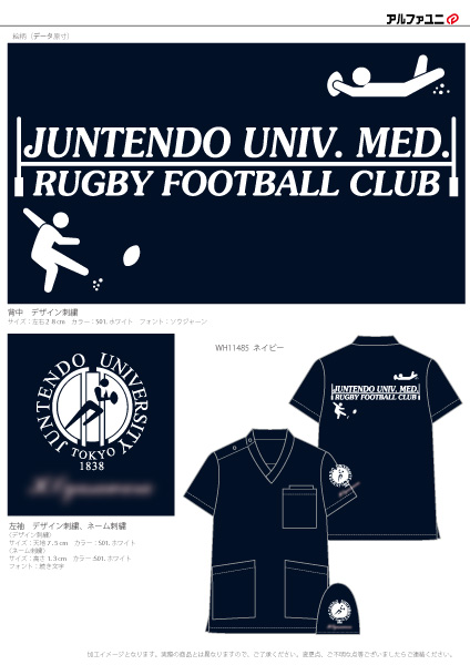 チームスクラブ 【NO.229】順天堂大学医学部ラグビー部2021様 WH11485 デザイン刺繍ネーム刺繍背中袖 【実績No.229】 順天堂大学医学部ラグビー部2021様-デザインスクラブのご紹介です。 このたびは製作のご依頼、および画像のご提供ありがとうございました。 お客様からのコメント この度は、オリジナルスクラブを作ってくださりありがとうございました! 途中変更も多く、大変お手数おかけしました。 綺麗な刺繍とプリントに部員一同感激しています。ありがとうございます!記念に残る一枚として、大切に使わせていただきます。 病院実習が始まり、全員で集まることができず、人数少なく申し訳ありませんが、よろしくお願いいたします。 この度は本当にありがとうございました! からのコメント このたびはアルファユニをご利用いただきましてありがとうございました! ● マーキングの詳細説明 左袖にデザイン刺繍、ネーム刺繍、背中には1色プリントを入れされていただきました。 病院実習が始まり、お忙しい中ありがとうございました。アルファユニが記念に残るスクラブ製作に携われたことをうれしく思います。 この記事をシェア その他おすすめ事例 【No.3】嘉悦大学インキュベーション同好会様 1525PH(廃番) 【No.6】北野病院様 MZ-0092 【No.8】佐久総合病院様 7003SC 実績一覧 特集 アルファユニカタログVol.5 刺繍の見た目が変わる?生地の違いと刺繍の差 コックコート・飲食系ユニフォーム特集 全面昇華プリントスクラブ 特集一覧