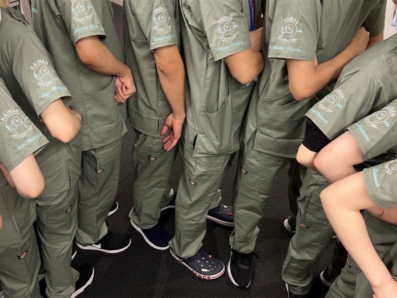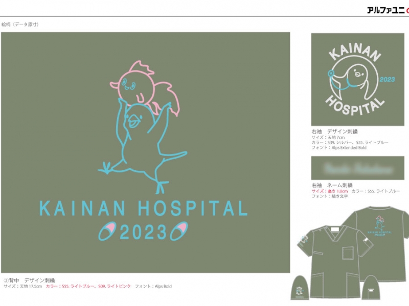 チームスクラブ 【NO.286】海南病院2023様 7033SC デザイン刺繍ネーム刺繍背中袖 【実績No.286】 海南病院2023様-オリジナルチームスクラブのご紹介です。 背中と右袖にデザイン刺繍を入れました。 このたびは製作のご依頼、および画像のご提供ありがとうございました。 お客様からのコメント デザインや刺繍糸について、ご相談にのっていただきまして、ありがとうございました。 海南病院のある弥富市は、金魚の養殖と文鳥の発祥地として有名です。そのため、金魚と文鳥をモチーフにデザインしました。 可愛く作っていただき、おかげさまで皆から大好評のスクラブとなりました。 ありがとうございました。 からのコメント このたびはアルファユニをご利用いただきましてありがとうございました! ●マーキングの詳細説明 背中に金魚と文鳥のデザイン刺繍、右袖に聴診器をつけた文鳥のデザイン刺繍とネーム刺繍を入れさせていただきました。 この記事をシェア その他おすすめ事例 【No.3】嘉悦大学インキュベーション同好会様 1525PH(廃番) 【No.6】北野病院様 MZ-0092 【No.8】佐久総合病院様 7003SC 実績一覧 特集 アルファユニカタログVol.5 刺繍の見た目が変わる?生地の違いと刺繍の差 コックコート・飲食系ユニフォーム特集 全面昇華プリントスクラブ 特集一覧