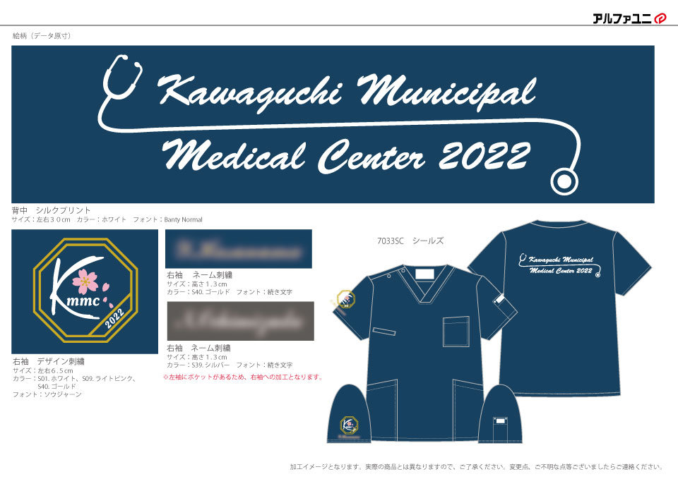研修医 【NO.274】川口市立医療センター2022年研修医様 7033SC シルクプリントデザイン刺繍ネーム刺繍プリント 1色背中袖 【実績No.274】 川口市立医療センター2022年研修医様-デザインスクラブのご紹介です。 このたびは製作のご依頼、および画像のご提供ありがとうございました。 お客様からのコメント お世話になっております 先日は、オリジナルスクラブの作成ありがとうございました。 皆連日着用させていただいております。 また機会がありましたら、貴社を利用させていただきたいと思います。 今後共何卒よろしくお願い致します。 からのコメント このたびはアルファユニをご利用いただきましてありがとうございました! ●マーキングの詳細説明 右袖にKMMCの文字と桜のデザインを合わせたデザイン刺繍、右袖にネーム刺繍、背中に同センター名と聴診器のデザインをシルクプリントで入れさせていただきました。 この記事をシェア その他おすすめ事例 【No.17】焼津市立病院様 7003SC 【No.24】長岡赤十字病院研修医様 MZ-0092 【No.50】宮古島徳洲会病院様 7003SC 実績一覧 特集 アルファユニカタログVol.5 刺繍の見た目が変わる?生地の違いと刺繍の差 コックコート・飲食系ユニフォーム特集 全面昇華プリントスクラブ 特集一覧