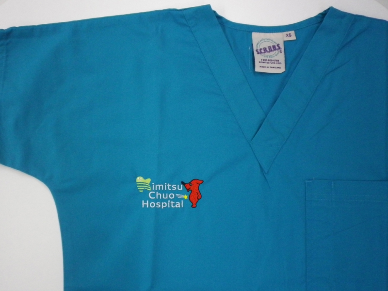 チームスクラブ 【No.48】君津中央病院様 Z1004 デザイン刺繍胸 【実績No.48】 君津中央病院様のスクラブです。千葉県のキャラクターのチーバくんとオリジナルマーク、病院名を組み合わせたオリジナルデザインです。とてもバランスがよく、可愛らしいデザインになりました。 ちーばくんデザインについては仕様申請が必要です。申請書類の作成、申請手続きまで無料で代行致します。 からのコメント ●マーキングの詳細説明 当初のお客様希望デザインは星の位置をチーバくんのおなかの上のところに置き、地図上の病院の位置表示としたかったのですが、県の広報課からNGが出てしまったため、星をチーバくんのデザインに重ねることができませんでした。仕方なくおなかの左横に配置となりました。 今回数量が多かったこともあり、刺繍色について文字をシルバー・ゴールド・ホワイト・黄緑の4配色としました。 オリジナルKマークは黄緑、星はイエローに統一したことで、全体の色バランスが落ち着いたと思います。 色使いが非常に綺麗です。 この記事をシェア その他おすすめ事例 【No.3】嘉悦大学インキュベーション同好会様 1525PH(廃番) 【No.6】北野病院様 MZ-0092 【No.8】佐久総合病院様 7003SC 実績一覧 特集 アルファユニカタログVol.5 刺繍の見た目が変わる?生地の違いと刺繍の差 コックコート・飲食系ユニフォーム特集 全面昇華プリントスクラブ 特集一覧