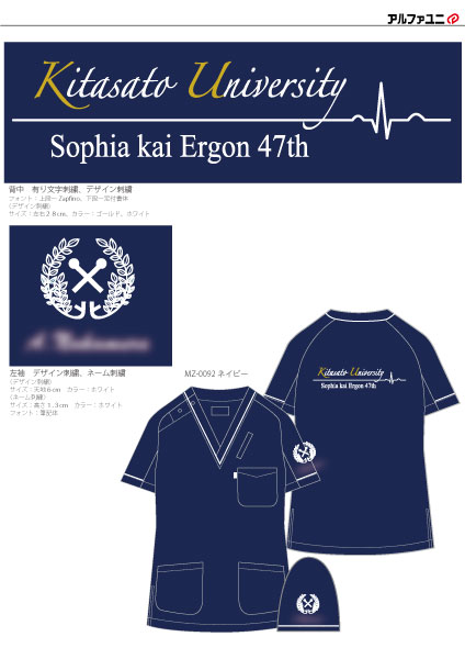 卒業記念 【NO.203】北里大学医学部47期様 MZ-0092 デザイン刺繍ネーム刺繍フォント刺繍背中袖 【実績No.203】 北里大学医学部47期様-卒業記念スクラブのご紹介です。 このたびは製作のご依頼、および画像のご提供ありがとうございました。 お客様からのコメント 2つデザインをして頂いたため、学年に皆で作成している気持ちが芽生えたと思います。 ご丁寧に対応頂き、誠にありがとうございました。 本日スクラブが届きました。とても素敵な卒業記念品を作っていただき、誠にありがとうございます。 からのコメント このたびはアルファユニをご利用いただきましてありがとうございました! ●マーキングの詳細説明 左袖にデザイン刺繍とネーム刺繍、背中にデザイン刺繍と学校名を有り文字刺繍で入れさせていただきました。 この記事をシェア その他おすすめ事例 【No.2】福島県立医科大学様 Z1004 【No.4】大学医学部医学科LaRa 8th卒業生様 DS-2001 【No.5】東京医科大学2015年卒業生様 7000SC 実績一覧 特集 アルファユニカタログVol.5 刺繍の見た目が変わる?生地の違いと刺繍の差 コックコート・飲食系ユニフォーム特集 全面昇華プリントスクラブ 特集一覧