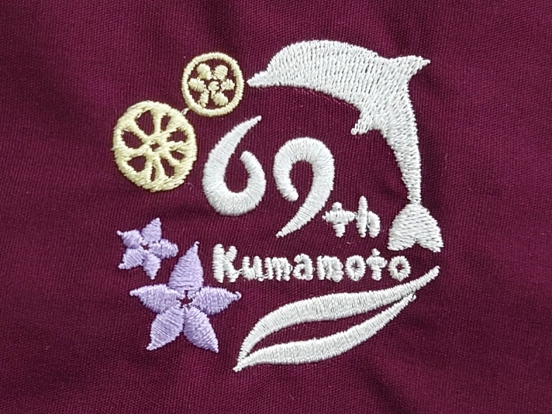 背中に熊本城やグリーンランドといった熊本ならではのスポットをイメージしたデザインのシルクプリントを入れさせていただきました。