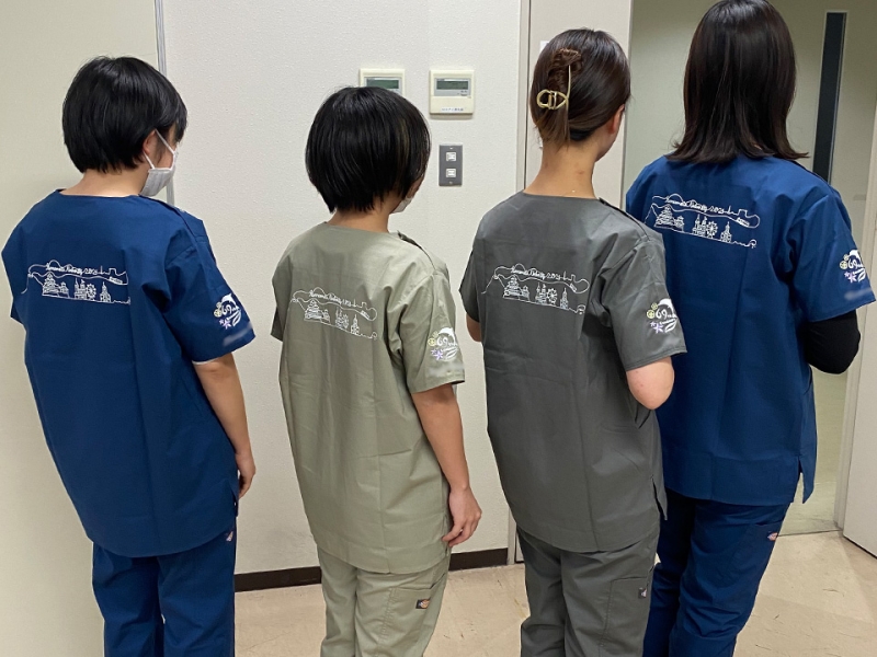 デザインや色を細かくお願いしてしまいましたが、どのカラーのスクラブも綺麗に仕上げていただき同期からも好評です。