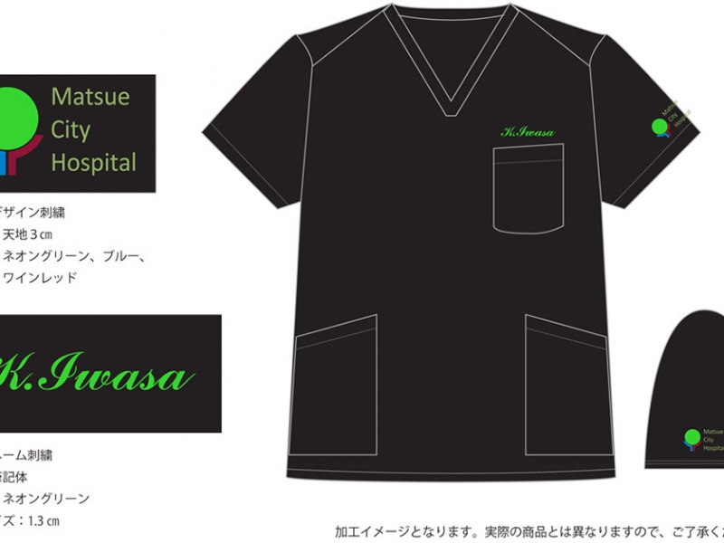 チームスクラブ 【No.56】松江市立病院様 7000SC デザイン刺繍ネーム刺繍ポケット口上袖 【実績No.56】 松江市立病院様のオリジナル・スクラブ製作のご紹介です。 スクラブ着用写真をご提供ありがとうございました! お客様からのコメント いつもお世話になります。先日、無事スクラブが届きました。 まずは、ご作成からご発送まで大変有難うございました。 大変ステキな仕上がりで皆から好評でした からのコメント アルファユニをご利用くださいましてありがとうございます!! 右胸はデザイン刺繍とシルクプリントの2パターン製作致しました。統一感を出しながら個性を持ったスクラブに仕上がりました。 ●マーキングの詳細説明 左袖には、病院マークのデザイン刺繍と、左ポケット口上にネーム刺繍を入れました。 刺繍カラーは、ネオングリーン、ワインレッド、ブルーの3色です。 刺繍サイズが天地3㎝と非常に小さかったのですが、シンプルなデザインということで、綺麗に再現できました。小さいデザインは、細かい部分は刺繍したときに潰れないかを細部までチェックし、必ず現場と確認します。円形が歪まないようにを刺繍することは、すべてのオブジェクトで一番難しいのですが、さほど大きくなかったので、問題ありませんでした。 この記事をシェア その他おすすめ事例 【No.3】嘉悦大学インキュベーション同好会様 1525PH(廃番) 【No.6】北野病院様 MZ-0092 【No.8】佐久総合病院様 7003SC 実績一覧 特集 アルファユニカタログVol.5 刺繍の見た目が変わる?生地の違いと刺繍の差 コックコート・飲食系ユニフォーム特集 全面昇華プリントスクラブ 特集一覧