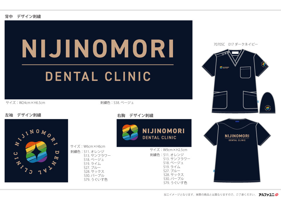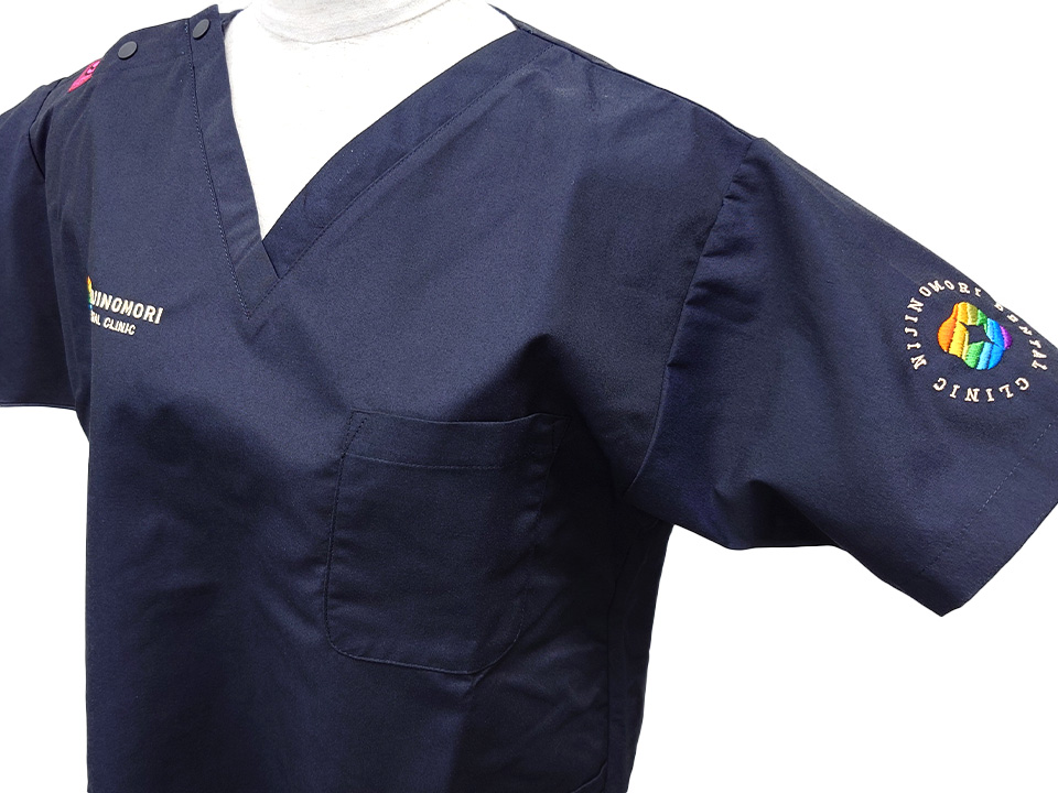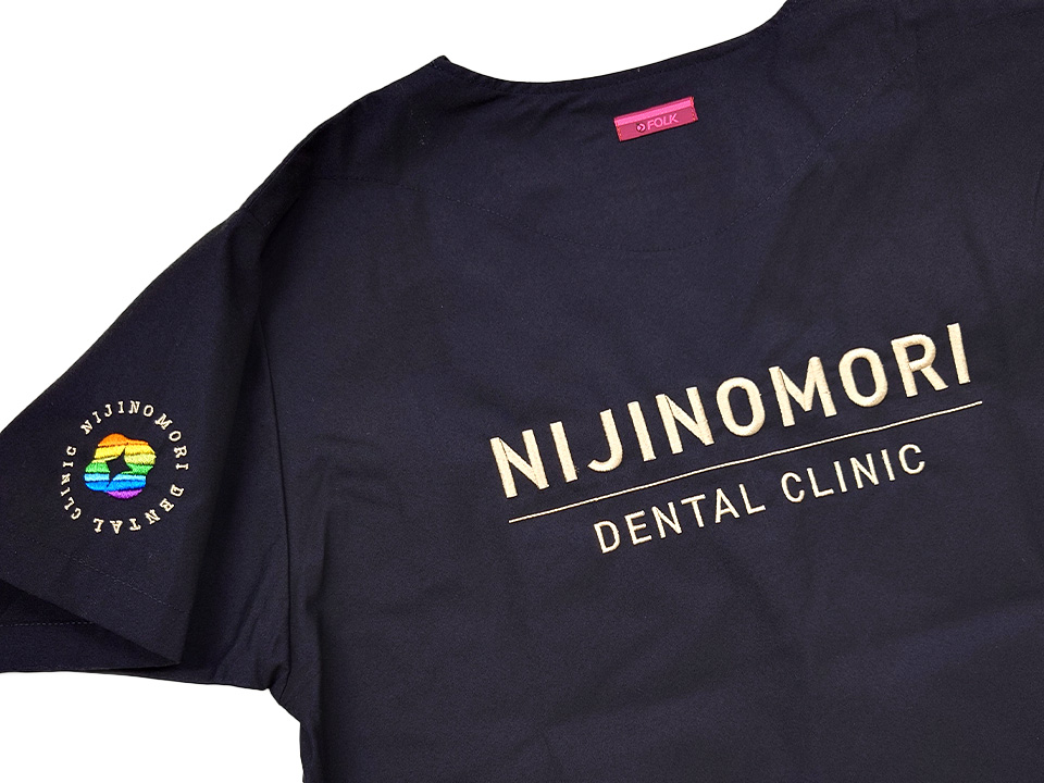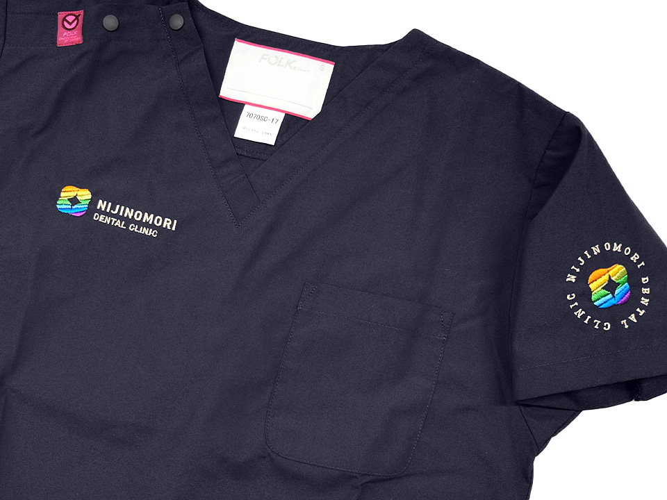 デンタル・歯科 【NO.314】にじの森歯科クリニック様 7070SC デザイン刺繍背中胸袖 【実績No.314】 にじの森歯科クリニック様-オリジナルチームスクラブのご紹介です。 デザイン刺繍は8色の色を使用しました。綺麗なデザインでしっかりと刺繍で再現出来ました。 このたびは製作のご依頼、および画像のご提供ありがとうございました。 お客様からのコメント 事前に当方のデザインが刺繍可能か確認していただき、お見積りもいただいて安心して注文することができました。デザインのカラー数が多いため他社では断られましたが、アルファユニさんは問題なく施工していただけました。出来上がりにも満足してます。何度か洗濯しましたがまったくほつれる様子はないです。 からのコメント このたびはアルファユニをご利用いただきましてありがとうございました! ●マーキングの詳細説明 左袖、右胸、背中にそれぞれロゴや病院名を使ったデザイン刺繍を入れさせていただきました。 この記事をシェア その他おすすめ事例 【NO.172】ワカスギ歯科クリニック様 7070SC 実績一覧 特集 アルファユニカタログVol.5 刺繍の見た目が変わる?生地の違いと刺繍の差 コックコート・飲食系ユニフォーム特集 全面昇華プリントスクラブ 特集一覧