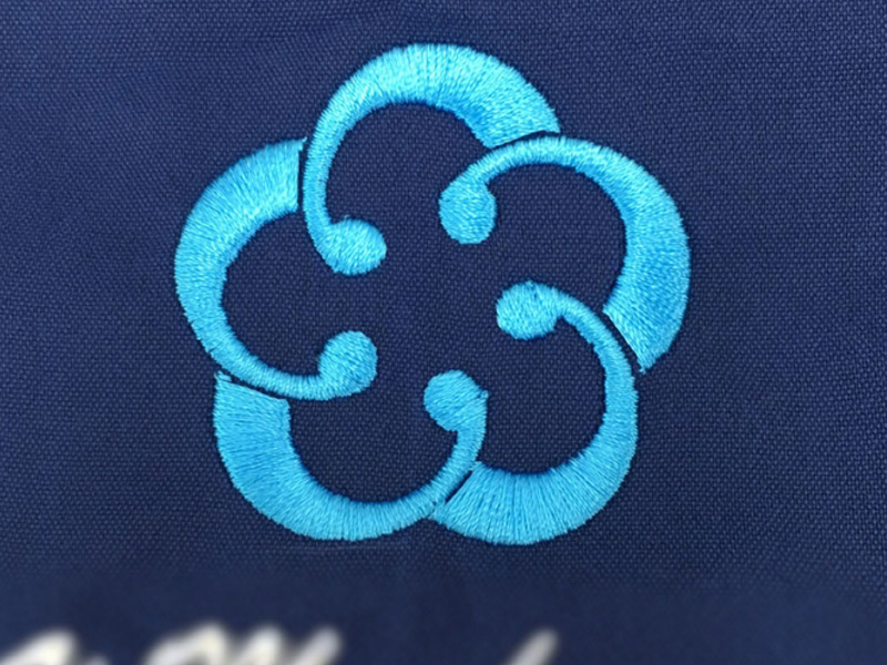 背中1色シルクプリント、左袖にデザイン刺繍とネーム刺繍を入れさせていただきました。