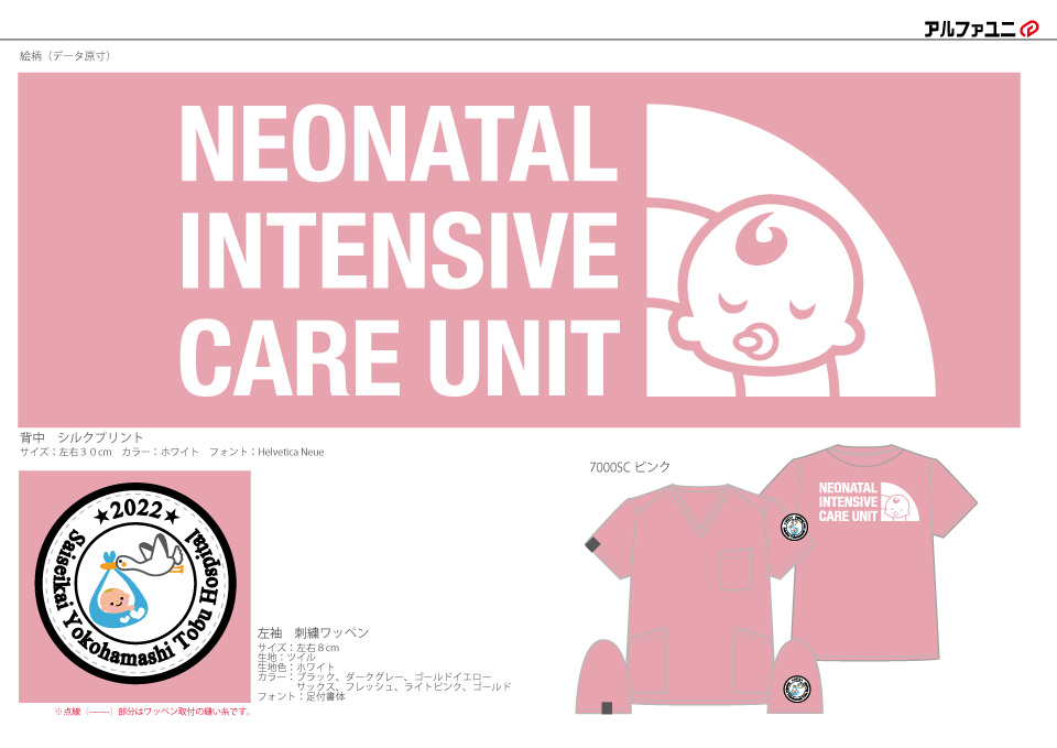 チームスクラブ 【NO.252】済生会横浜市東部病院NICU2022様 7000SC シルクプリントプリント 1色刺繍ワッペン背中袖 【実績No.252】 済生会横浜市東部病院NICU2022様-チームスクラブのご紹介です。 2020年、2021年に続き、製作のご依頼、および画像のご提供ありがとうございました。 背中のデザインは毎年新柄となり、袖のワッペンは年号の変更でベースとなるデザインは継続にて製作をさせていただきました。 お客様からのコメント 今年で3回目の注文です。 病棟内がとてもカラフルで、楽しく仕事してます! また来年度もよろしくお願いします。 ありがとうございました。 からのコメント 済生会横浜市東部病院NICU様、3度目の製作のご依頼となります。アルファユニのご利用毎度ありがとうございました! ●マーキングの詳細説明 左袖にコウノトリをデザインした刺繍ワッペン、背中に眠る赤ちゃんのデザインと部署名をシルクプリントを入れさせていただきました。 この記事をシェア その他おすすめ事例 【No.3】嘉悦大学インキュベーション同好会様 1525PH(廃番) 【No.6】北野病院様 MZ-0092 【No.8】佐久総合病院様 7003SC 実績一覧 特集 アルファユニカタログVol.5 刺繍の見た目が変わる?生地の違いと刺繍の差 コックコート・飲食系ユニフォーム特集 全面昇華プリントスクラブ 特集一覧