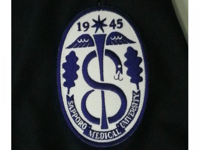 刺繍についても作成させていただきました。 下側リボンの上の「SAPPORO MEDICAL UNIVERSITY」の文字はかなり小さいです。ところによってはかなり細いため、一部は針を横に振ることができず、ステッチ表現になりましたが、何とか再現することができました。