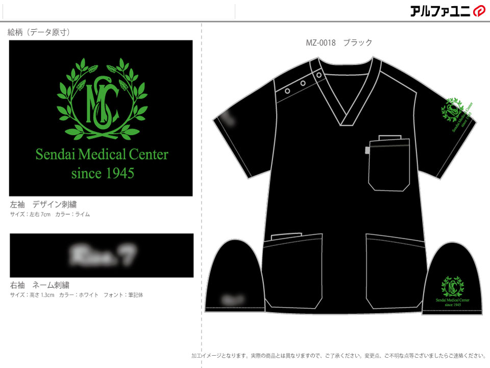 研修医 【NO.211】仙台医療センター2021様 MZ-0018 デザイン刺繍ネーム刺繍袖 【実績No.211】 仙台医療センター2021様-デザインスクラブのご紹介です。 このたびは製作のご依頼、および画像のご提供ありがとうございました。 お客様からのコメント この度はスクラブを作っていただきありがとうございました!手軽にお揃いのデザインが完成し感動しました! 今後とも機会がありましたらよろしくお願いいたします。 からのコメント このたびはアルファユニをご利用いただきましてありがとうございました! ● マーキングの詳細説明 左袖にデザイン刺繍、右袖にネーム刺繍を入れさせていただきました。 この記事をシェア その他おすすめ事例 【No.17】焼津市立病院様 7003SC 【No.24】長岡赤十字病院研修医様 MZ-0092 【No.50】宮古島徳洲会病院様 7003SC 実績一覧 特集 アルファユニカタログVol.5 刺繍の見た目が変わる?生地の違いと刺繍の差 コックコート・飲食系ユニフォーム特集 全面昇華プリントスクラブ 特集一覧