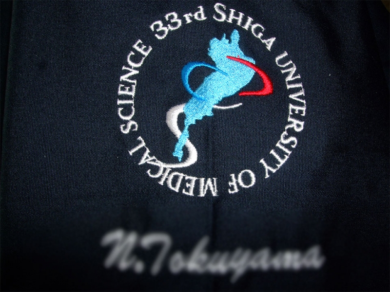 卒業記念 【No.15】滋賀医科大学様 7000SC デザイン刺繍ネーム刺繍袖 【実績No.15】 滋賀医科大学33期卒業生様の記念スクラブデザインです。 卒業記念スクラブのデザインは、一般的に大学のマークや校章を入れる傾向が高いですが、滋賀医科大学様について、とても個性的でスタイリシュなデザインです。スクラブ着用での集合写真をご提供ありがとうございました! お客様からのコメント 良い卒業の記念になりました。ありがとうございました。 袖のアップの写真も送りますね。 またスクラブを作る機会があればよろしくお願いします。 からのコメント このたびはアルファユニをご利用いただきましてありがとうございました! ●マーキングの詳細説明 左袖デザイン刺繍のデザイン刺繍は、滋賀県のシンボル琵琶湖のシルエットをセンターに置き、サックスで表現。さらには、SHIGAの「S]をレイヤーで組み合わせました。琵琶湖をサックス、その周りをブルー・レッド・ライトグレー・ホワイトと、5色の色バランスも綺麗です。 過去色々とスクラブのプリントや刺繍デザイン制作をしてきましたが、シンプルなデザインというカテゴリーがあるとすれば、おそらくNo.1ですね! プリントと比べて、刺繍はデザインの表現が立体的になりますので、とても見栄えが良くなります! 技術的な話になりますが、中央部の琵琶湖シルエットを畳打ち(畳のように細かく打つ刺繍)で、 その周りをサテン打ち(進む方向に向かった90度に横に振りながら打つ刺繍)にしています。刺繍の打ち方を変えることにより光の反射の方向が変わるため、さらに立体感が増しています。刺繍の場合、5色程度までは色数が増えてもコストが変わりませんので、色数を増やすことによってカラフルに表現できますよ。 この記事をシェア その他おすすめ事例 【No.2】福島県立医科大学様 Z1004 【No.4】大学医学部医学科LaRa 8th卒業生様 DS-2001 【No.5】東京医科大学2015年卒業生様 7000SC 実績一覧 特集 アルファユニカタログVol.5 刺繍の見た目が変わる?生地の違いと刺繍の差 コックコート・飲食系ユニフォーム特集 全面昇華プリントスクラブ 特集一覧