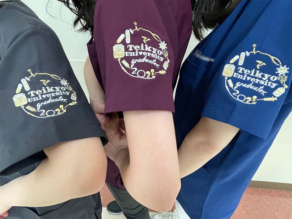 卒業記念 【NO.239】帝京大学医学部2022年卒業生様 133 デザイン刺繍ネーム刺繍袖 【実績No.239】 帝京大学医学部2022年卒業生様-デザインスクラブのご紹介です。 このたびは製作のご依頼、および画像のご提供ありがとうございました。 お客様からのコメント 今回は卒業記念のスクラブ作成をどうもありがとうございました。 納得いくまで何度も修正、助言をして頂き、お陰様で最高のクオリティーに仕上がりました。とても満足しています。 また幹事らくらくパックにてスムーズに集計していただいたので、国試前の忙しい時期にとても助かりました。 迅速に対応していただいて誠にありがとうございました。 からのコメント このたびはアルファユニをご利用いただきましてありがとうございました! ●マーキングの詳細説明 左袖にデザイン刺繍、左ポケット口上にネーム刺繍を入れさせていただきました。 この記事をシェア その他おすすめ事例 【No.2】福島県立医科大学様 Z1004 【No.4】大学医学部医学科LaRa 8th卒業生様 DS-2001 【No.5】東京医科大学2015年卒業生様 7000SC 実績一覧 特集 アルファユニカタログVol.5 刺繍の見た目が変わる?生地の違いと刺繍の差 コックコート・飲食系ユニフォーム特集 全面昇華プリントスクラブ 特集一覧