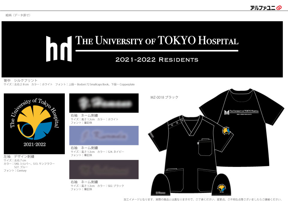 当院の研修医スクラブは毎年アルファユニさんに作成をお願いしていますが、今年も合計90人近く、枚数にして160枚ほどのスクラブを作成開始から数週間でお作りいただきました。枚数が多い分細かい調整や変更点なども生じてしまいましたが、それらについても一つ一つ丁寧にご対応いただきました。