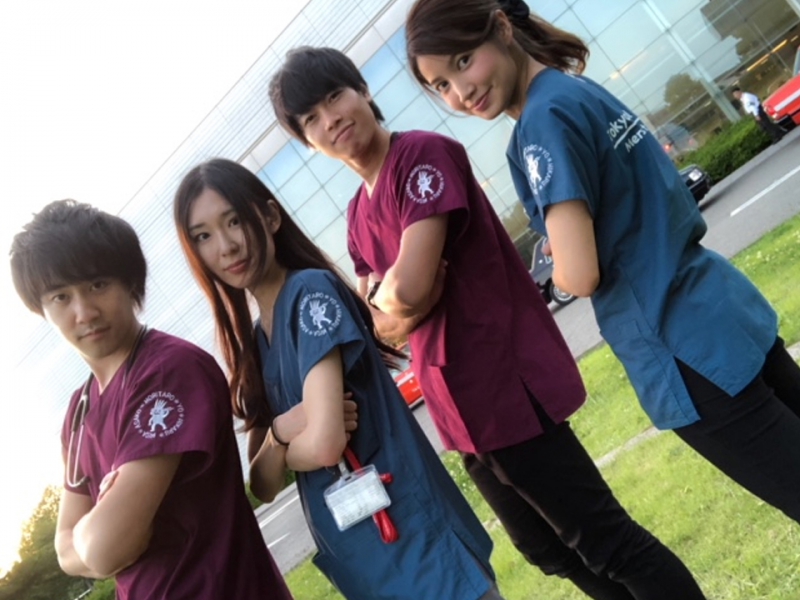 背中には病院名をプリント、左袖には注射を持ってキャラクターを同期の名前で囲みました。