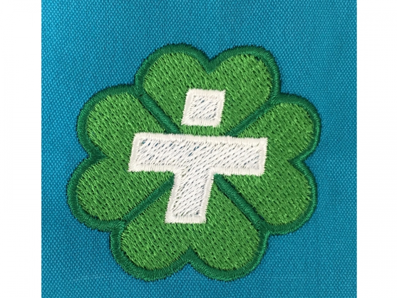 デザイン刺繍はカラーS01.ホワイト、S19.ライム、S18.グリーンを使用。