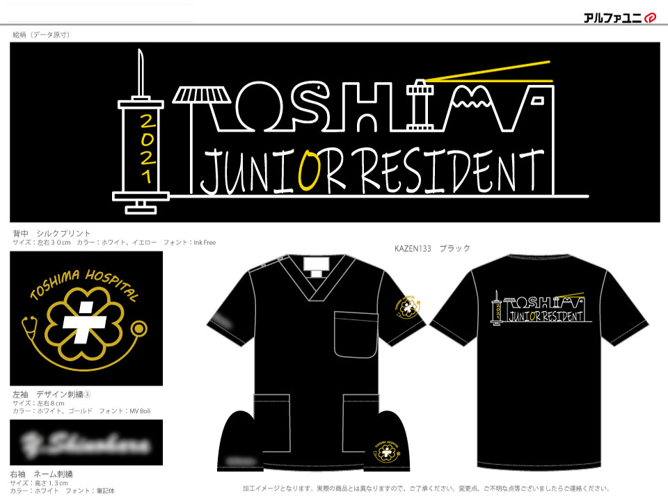 研修医 【NO.210】東京都保健医療公社 豊島病院様 133 シルクプリントデザイン刺繍ネーム刺繍プリント 2色背中袖 【実績No.210】 東京都保健医療公社 豊島病院様-デザインスクラブのご紹介です。 このたびは製作のご依頼、および画像のご提供ありがとうございました。 お客様からのコメント オリジナルスクラブ無事受け取りました。 仕上がりがとても綺麗で、病院内でも大変好評です。素敵なスクラブをありがとうございました。 今後ともどうぞよろしくお願いいたします。 からのコメント このたびはアルファユニをご利用いただきましてありがとうございました! ● マーキングの詳細説明 左袖にデザイン刺繍、右袖にネーム刺繍、背中にオリジナルデザインのシルクプリントを入れさせていただきました。 この記事をシェア その他おすすめ事例 【No.17】焼津市立病院様 7003SC 【No.24】長岡赤十字病院研修医様 MZ-0092 【No.50】宮古島徳洲会病院様 7003SC 実績一覧 特集 アルファユニカタログVol.5 刺繍の見た目が変わる?生地の違いと刺繍の差 コックコート・飲食系ユニフォーム特集 全面昇華プリントスクラブ 特集一覧