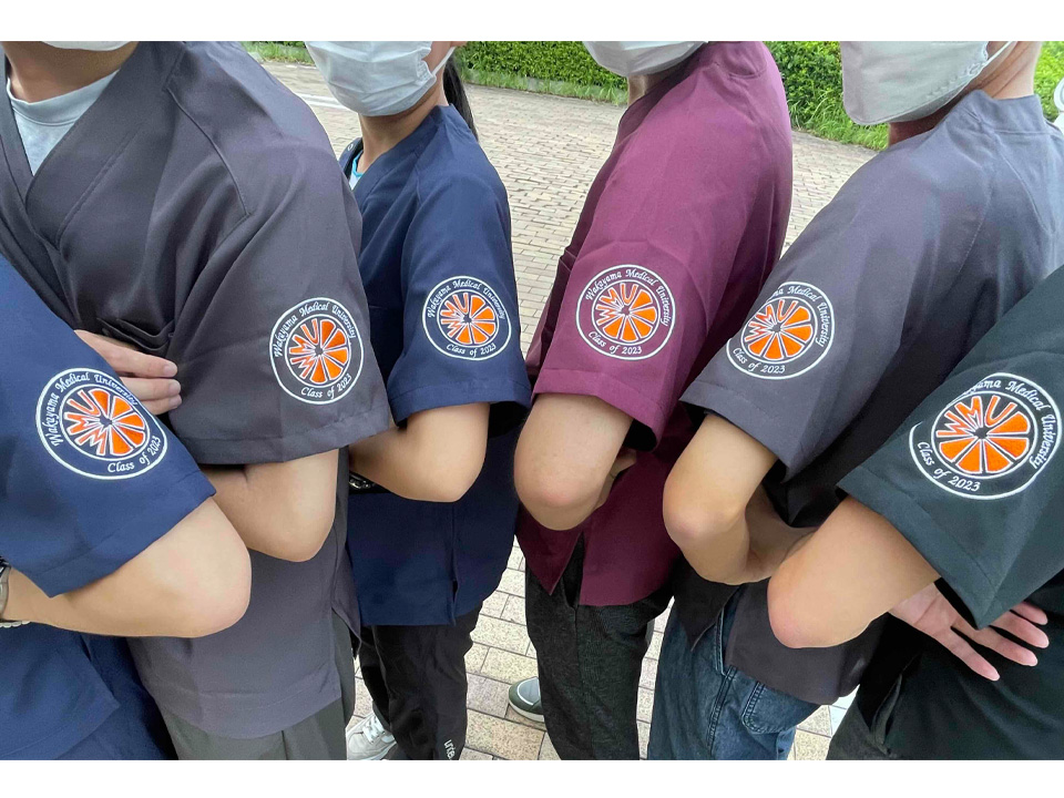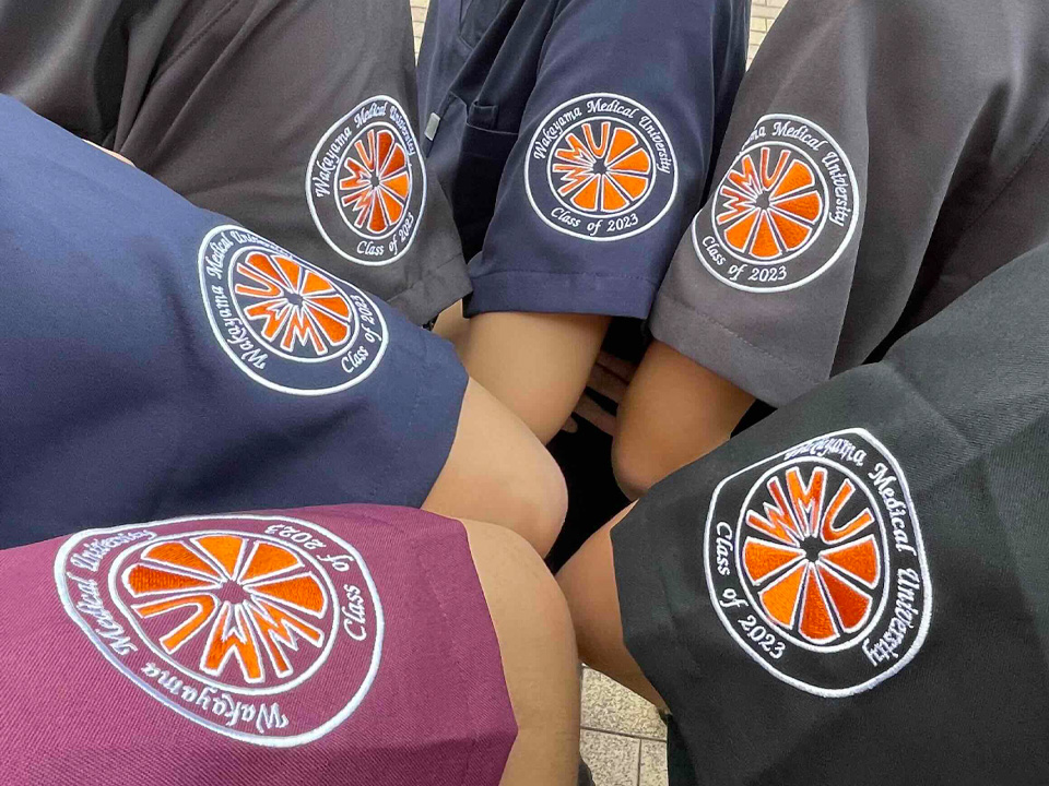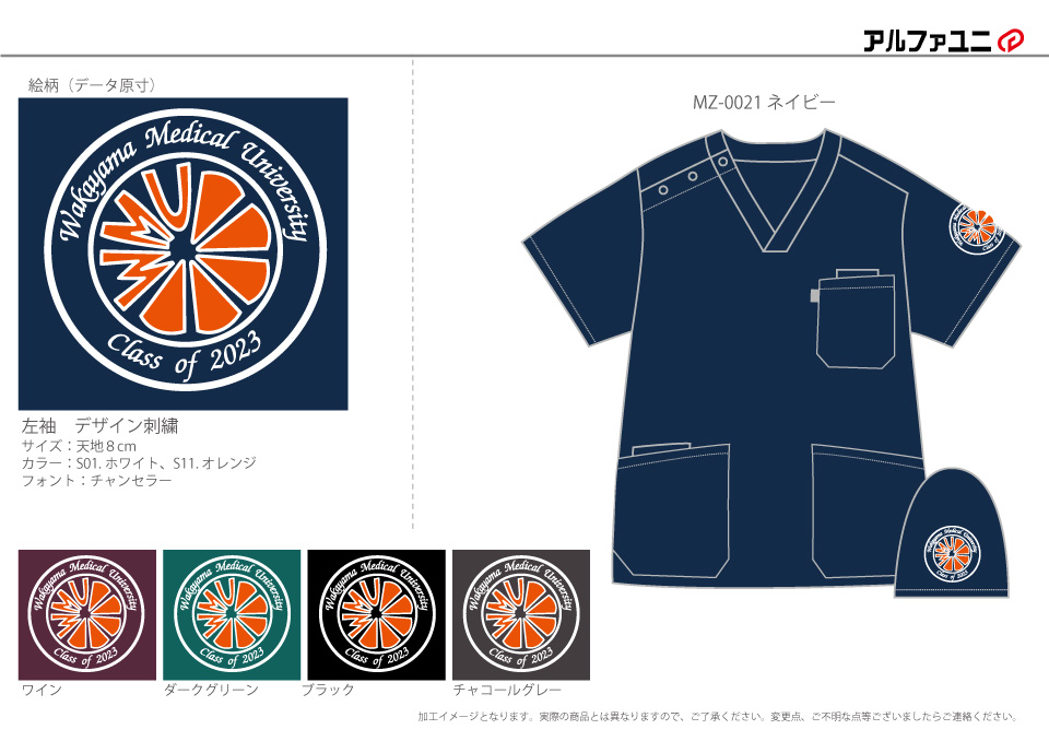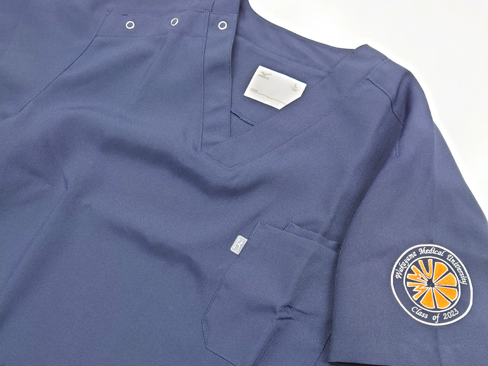 卒業記念 【NO.264】和歌山県立医科大学2023年卒業生様 MZ-0021 デザイン刺繍袖 【実績No.264】 和歌山県立医科大学2023年卒業生様-卒業記念スクラブのご紹介です。 和歌山県ということでみかんのイラストをアレンジしたオリジナルデザインを刺繍しました。 スクラブは卒業記念ではロングセラー一番人気のミズノMZ-0021を採用いただきました。 このたびは製作のご依頼、および画像のご提供ありがとうございました。 お客様からのコメント 卒業後は、それぞれ就職のために全国へ散らばってしまうので、卒業前に同期で同じスクラブを揃えることが憧れでした。 アルファユニはスクラブの在庫からデザインまで同じ窓口で注文可能であること、webの実績を見てクオリティーが高いと感じたことからお取引をお願いするに至りました。 iPadで適当に描いたデザインを刺繍で再現していただき、実物が届いた時は鮮やかで感動しました。刺繍入りのスクラブを見るだけで、大変な研修医生活を頑張ろうという気持ちになれます。また、来年の4月以降離れてしまう同期のことを考えると今までは寂しい気持ちだけでしたが、同じスクラブを持っていると考えると晴れやかな気持ちも抱くようになりました。同期のみんなにとっても、初めてのスクラブ、初めてのお揃いということもあって、とても喜んでくれています。写真の笑顔をぜひご覧ください。 からのコメント このたびはアルファユニをご利用いただきましてありがとうございました! ●マーキングの詳細説明 左袖に大学名のイニシャルとミカンのデザインを組み合わせた刺繍を入れさせていただきました。 この記事をシェア その他おすすめ事例 【No.2】福島県立医科大学様 Z1004 【No.4】大学医学部医学科LaRa 8th卒業生様 DS-2001 【No.5】東京医科大学2015年卒業生様 7000SC 実績一覧 特集 アルファユニカタログVol.5 刺繍の見た目が変わる?生地の違いと刺繍の差 コックコート・飲食系ユニフォーム特集 全面昇華プリントスクラブ 特集一覧