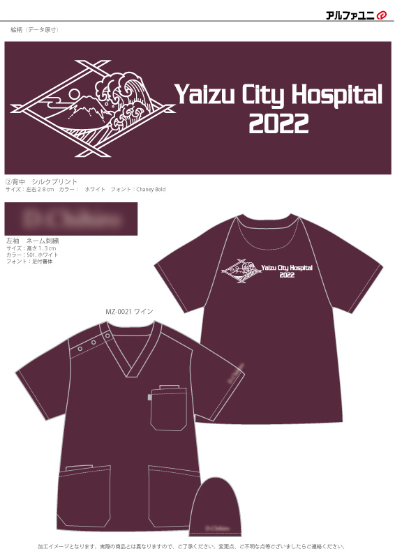 研修医 【NO.253】焼津市立総合病院2022様 MZ-0021 シルクプリントネーム刺繍プリント 1色背中袖 【実績No.253】 焼津市立総合病院2022様-チームスクラブのご紹介です。焼津市立総合病院研修医様から毎年デザインを変えてスクラブ製作のご注文をいただいております。今回は背中のデザインをシルクプリントで入れました。画像のご提供ありがとうございました。 お客様からのコメント 今回出来上がったスクラブを着ているだけでも日々の業務でのモチベーションが高まり、感謝しております。 からのコメント このたびはアルファユニをご利用いただきましてありがとうございました! ●マーキングの詳細説明 背中に富士山と波、病院名でデザインしたシルクプリントを入れました。左袖にはネーム刺繍を入れています。 この記事をシェア その他おすすめ事例 【No.17】焼津市立病院様 7003SC 【No.24】長岡赤十字病院研修医様 MZ-0092 【No.50】宮古島徳洲会病院様 7003SC 実績一覧 特集 アルファユニカタログVol.5 刺繍の見た目が変わる?生地の違いと刺繍の差 コックコート・飲食系ユニフォーム特集 全面昇華プリントスクラブ 特集一覧