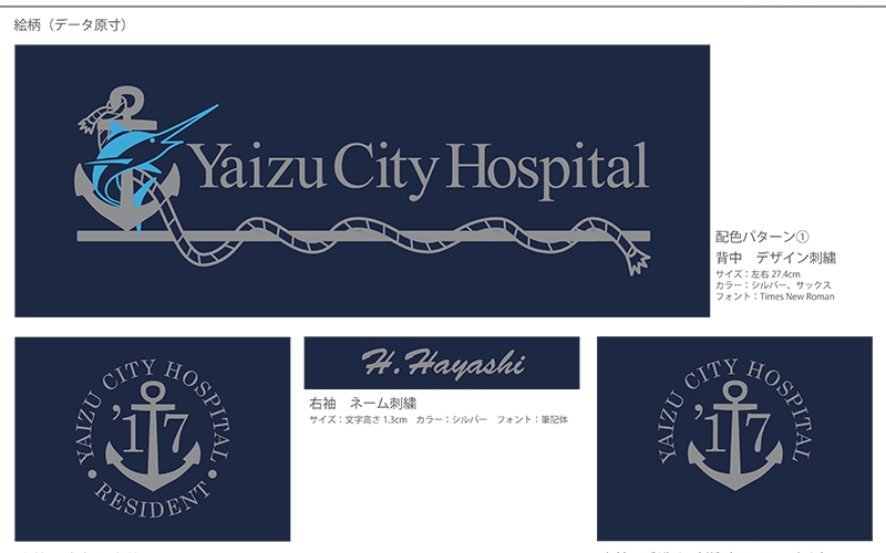 研修医 【No.74】焼津市立病院様2017 133 デザイン刺繍ネーム刺繍背中袖 【実績No.74】 焼津市立病院様2017のスクラブのご紹介です。 お客様からのコメント 先日、スクラブが届きました。 デザインがすばらしく大変好評です。 個別包装して下さりありがとうございます。 2つめのスクラブも楽しみにしながらお待ちしております。 質問なのですが、スクラブを洗濯するときはそのままと裏返しにして洗うのとではどちらが刺繍のもちがよいでしょうか。 からのコメント このたびはアルファユニをご利用いただきましてありがとうございました! 以前は焼津ということでマグロのデザインを刺繍したスクラブを製作しましたが、今回はカジキマグロと錨のイラストを入れたデザインとなりました。 【弊社からの洗濯についても質問回答】 ⇒洗濯について、ご連絡いただきましたが、刺繍加工ですので、糸がボタンや金具などに引っかからないようにネットにいれて洗濯をしていただくのが良いかと思います。裏側の下糸の方が上糸(表側の糸)より強度が弱いのでお気を付けください。 ●マーキングの詳細説明 背中の刺繍について サイズ左右約28㎝、シルバーとサックスの2色表現となっています。 カジキと錨はしっかりと糸を打ち込んいますので、ボリューム感、存在感ともかなり高い出来上がりです。スクラブの希望カラーに合わせて加工イメージを作成させていただきましたので、製作前に出来上がりのイメージを掴んでいただけたと思います。袖のデザインはResident入りとResident無しでそれぞれの希望の合わせて刺繍しました。 この記事をシェア その他おすすめ事例 【No.17】焼津市立病院様 7003SC 【No.24】長岡赤十字病院研修医様 MZ-0092 【No.50】宮古島徳洲会病院様 7003SC 実績一覧 特集 アルファユニカタログVol.5 刺繍の見た目が変わる?生地の違いと刺繍の差 コックコート・飲食系ユニフォーム特集 全面昇華プリントスクラブ 特集一覧