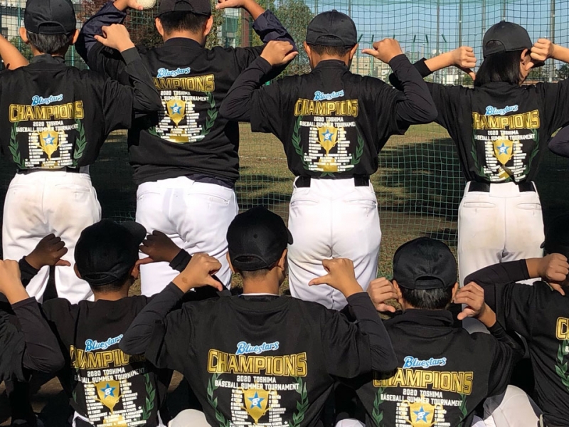 東京豊島区少年野球チームブルースターズ優勝記念(チャンピオン)Tシャツのご紹介です。