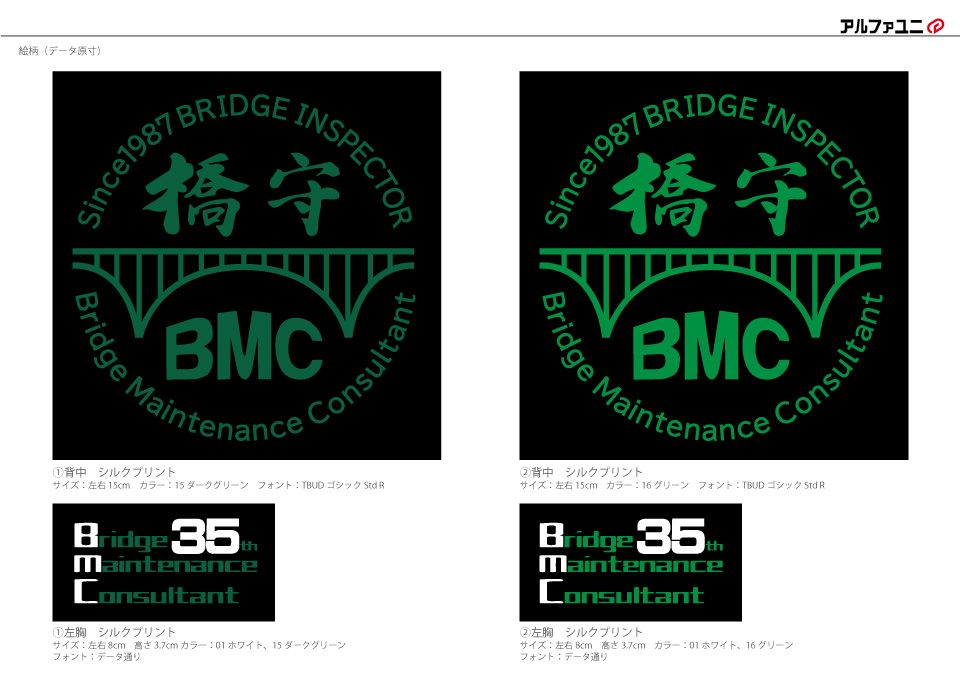 背中に同社のロゴマーク、左胸に社名と35thの文字をそれぞれシルクプリントで入れさせていただきました。