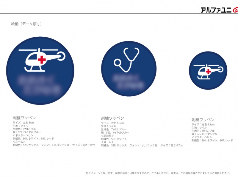 今年3月にドクターヘリと聴診器のワッペンを仕上げていただきました。