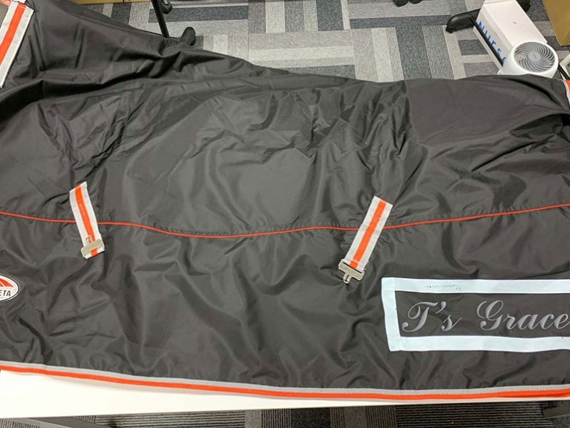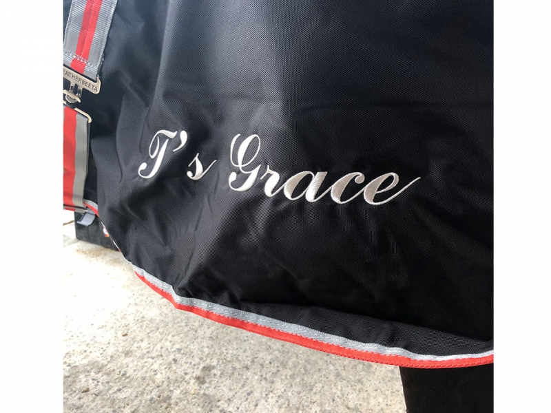 馬着のサイドにお馬さんの名前「Grace」を大きく刺繍で入れさせていただきました。