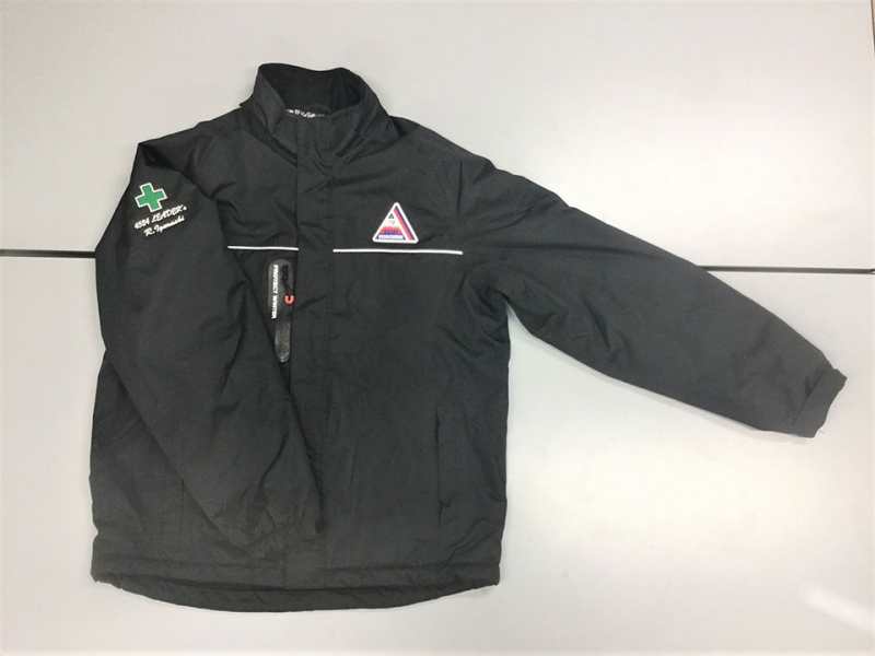右袖には安全マークの緑十字を直刺繍で入れております。