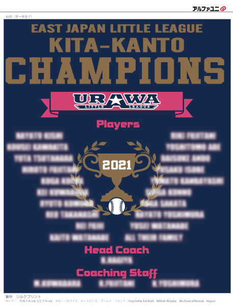 浦和リトルリーグ様-優勝記念Tシャツのご紹介です。